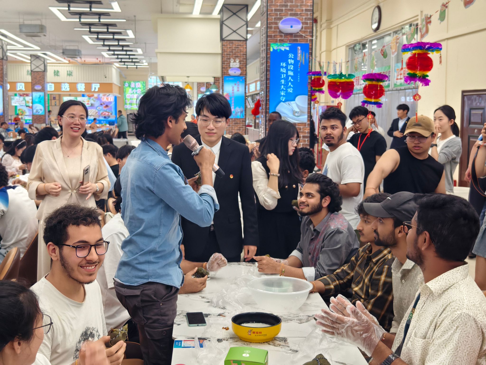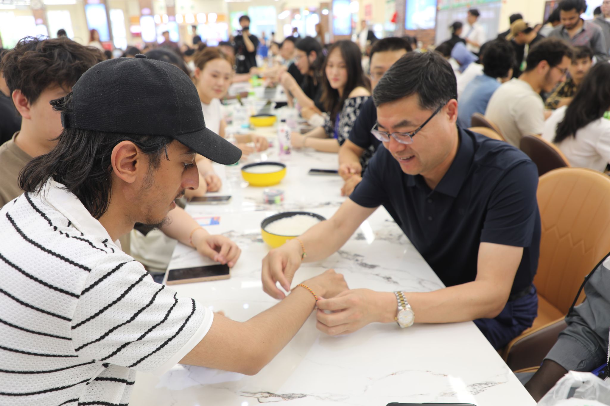 (通讯员 金海燕 记者 周宏 摄影/杨雨剑)为深入学习贯彻习近平文化思想,大力弘扬中华优秀传统文化,坚定文化自信,全面践行文化育人理念,5月30日下午,正值端午佳节即将到来之际,校团委在第二食堂举办“一叶一绳承传统・一针一线连世界”端午节国际文化交流活动。校党委副书记、工会主席于长青,校党委常委、统战部部长姜军,团委、开云体育线下专属客服合作中心(国际教育学院)负责人,部分学院党委副书记与来华留学生、各民族学生共计600余人欢聚一堂,共同学习传统文化、体验民俗、交流美食,开启一场跨越国界、各民族交往交流交融的端午文化盛宴。